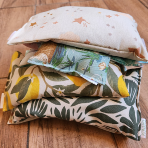 Son almohadillas relajantes y terapéuticas con semillas y flores de lavanda